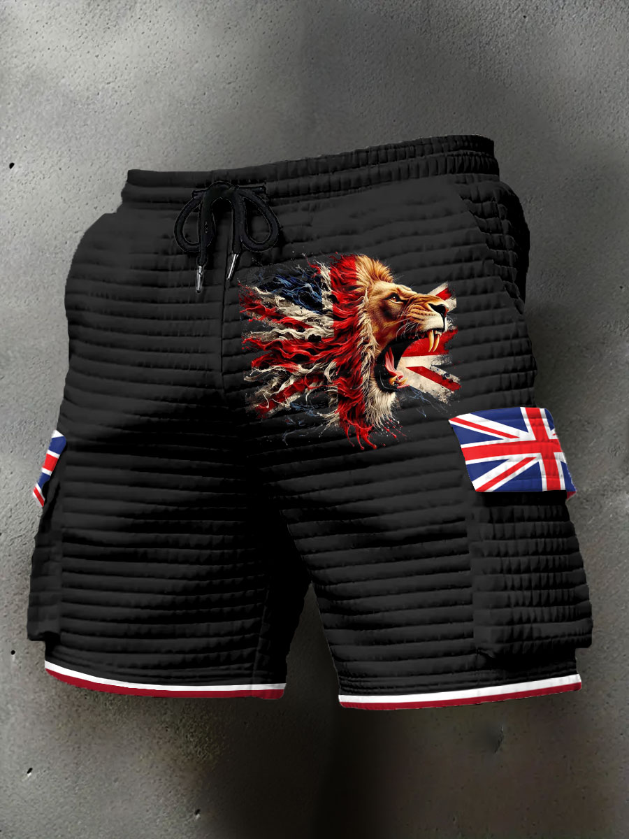 Men's UK Flag Lion Printed Shorts