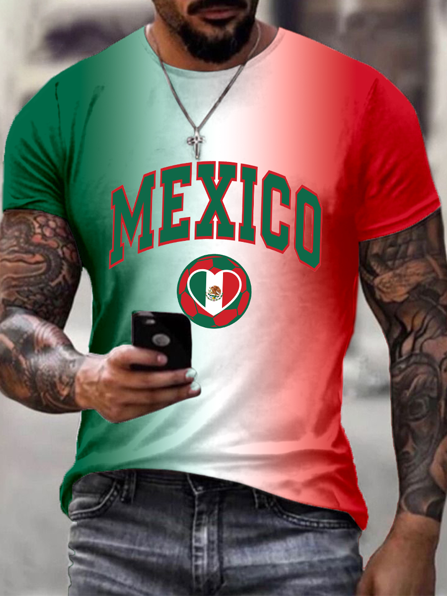 Men's Soccer Team Print Contrast Color T-Shirt
