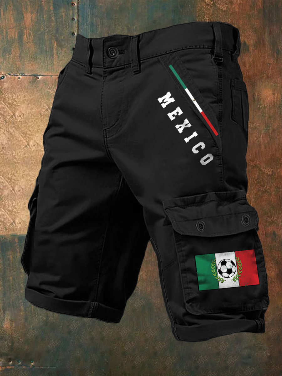 Men's Soccer Team Inspired Print Cargo Shorts