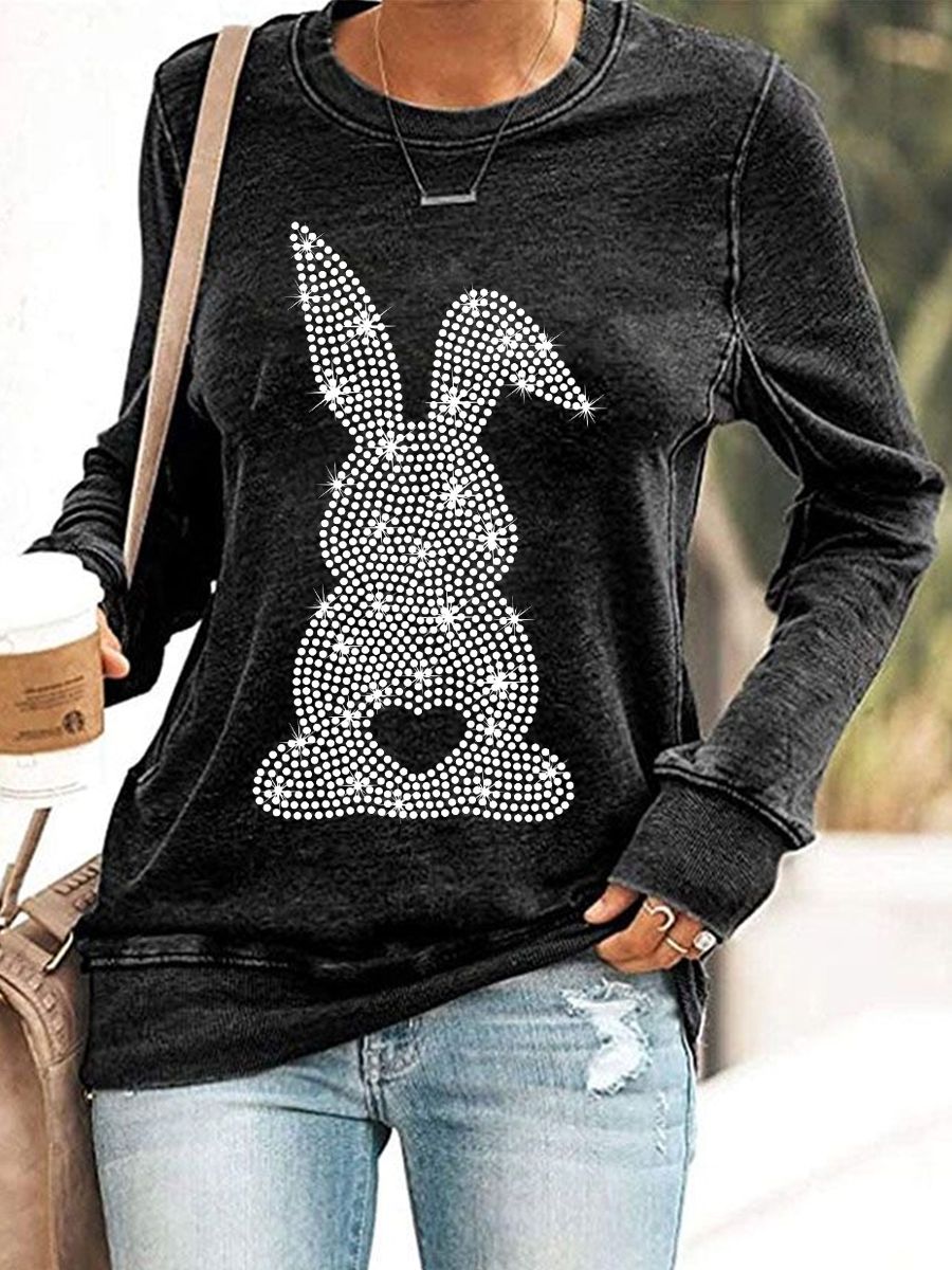 Women's Cute Bunny Rhinestone Pattern Sweatshirt