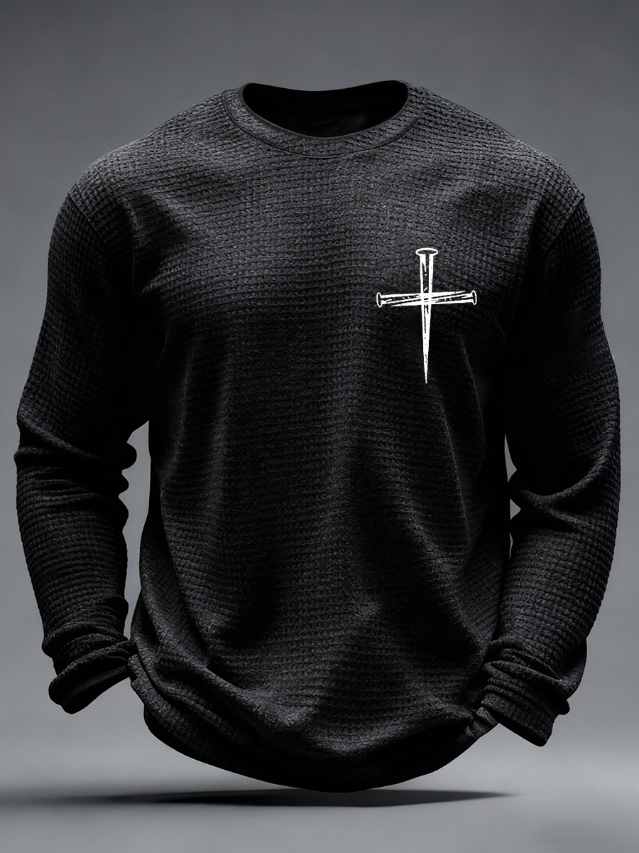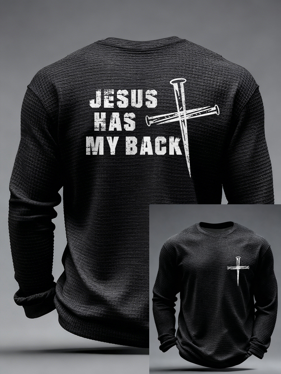 Men's Jesus Has My Back Cross Faith Print Casual Waffle Long Sleeve T-Shirt