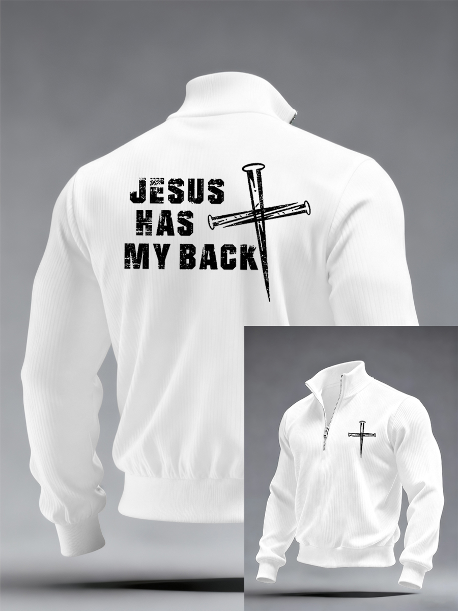 Men's Jesus Has My Back Printed Casual Zipper Pullover