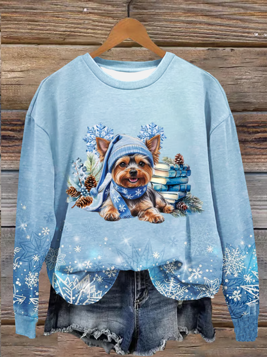 Women's Snowflake Dog Christmas Art Printed Sweatshirt