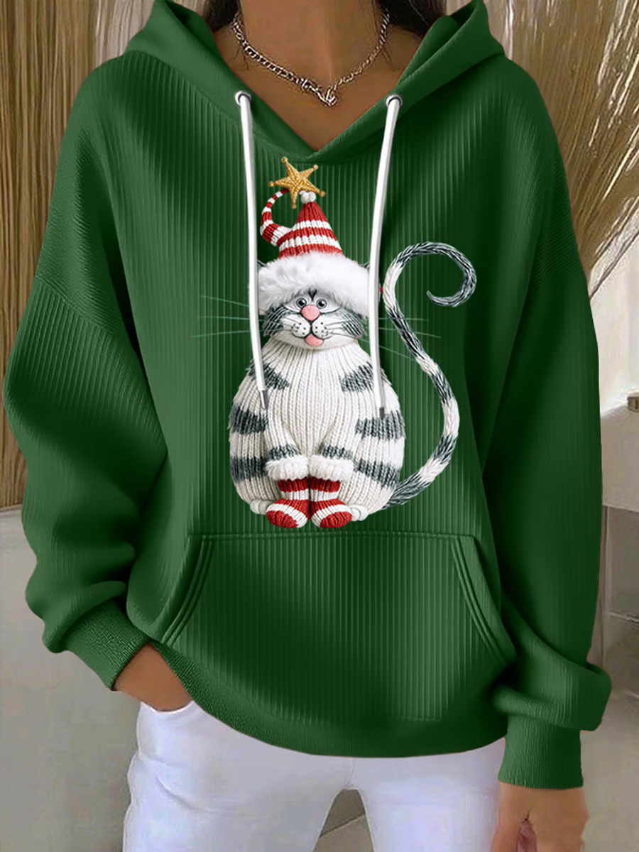 Women's Cute Christmas Cat Print Casual Hoodie