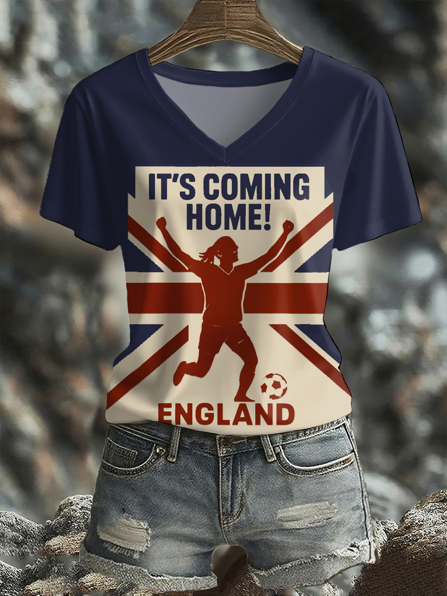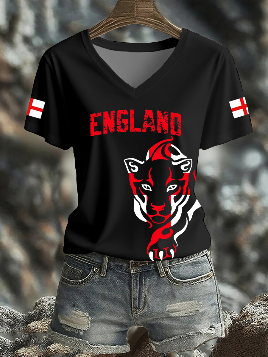 Women's UK England Football Lover Champion Printed T-shirt
