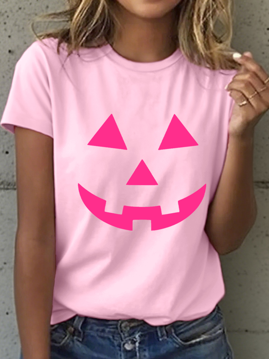Women's Pink Pumpkin Face Print T-Shirt
