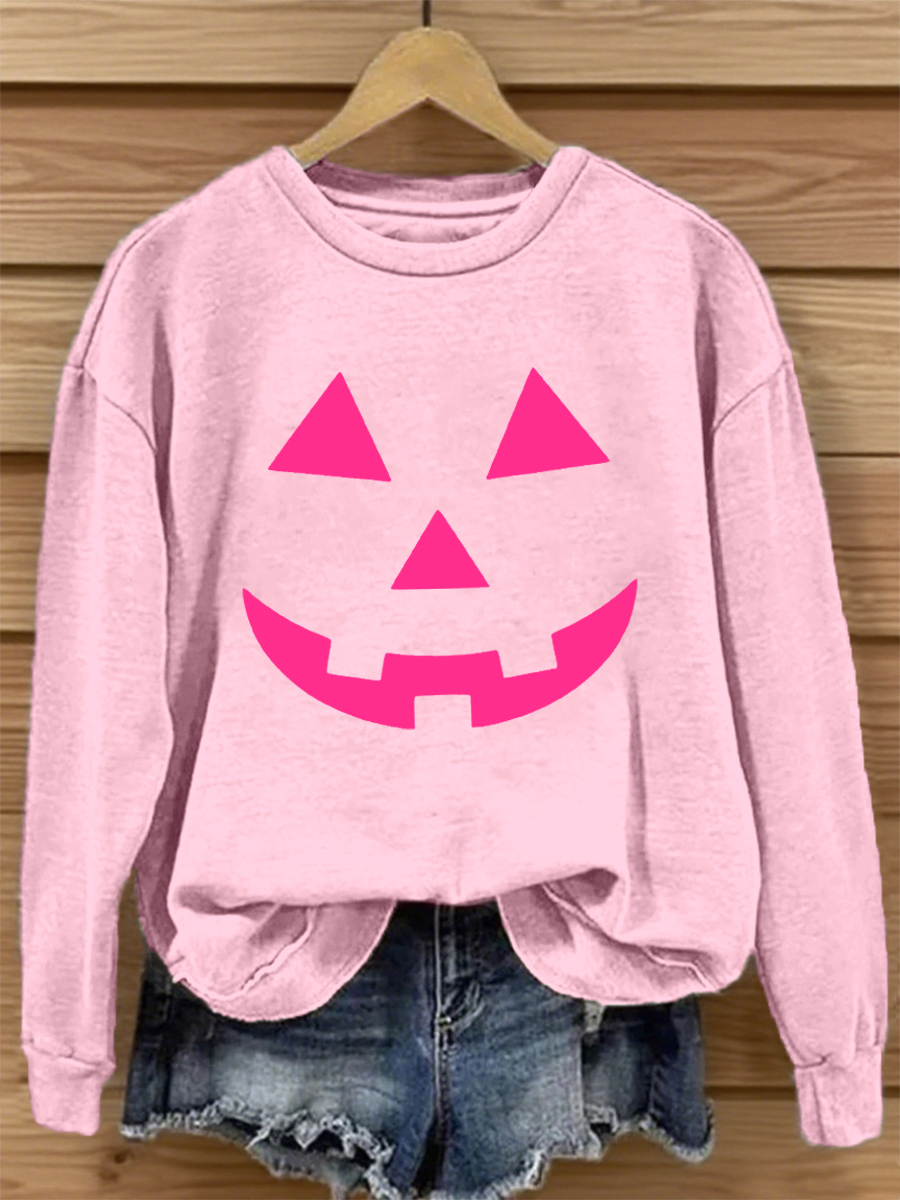 Women's Pink Pumpkin Face Print Sweatshirt