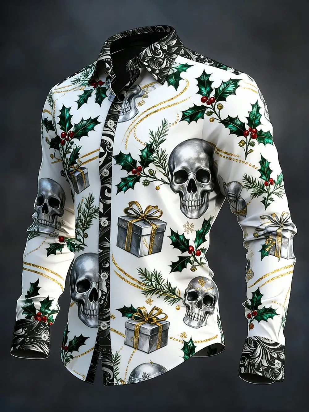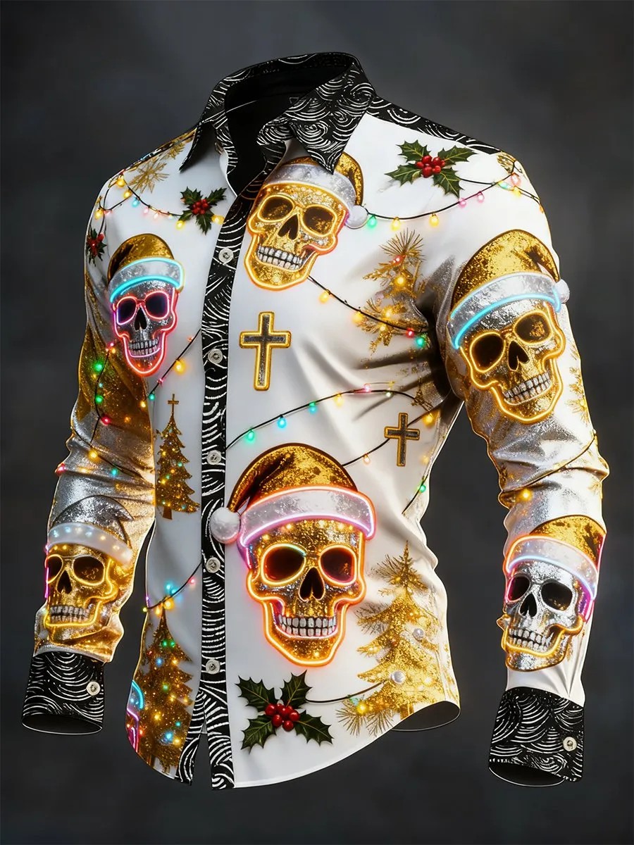 Men's Vintage Christmas Skull Long Sleeve Shirt