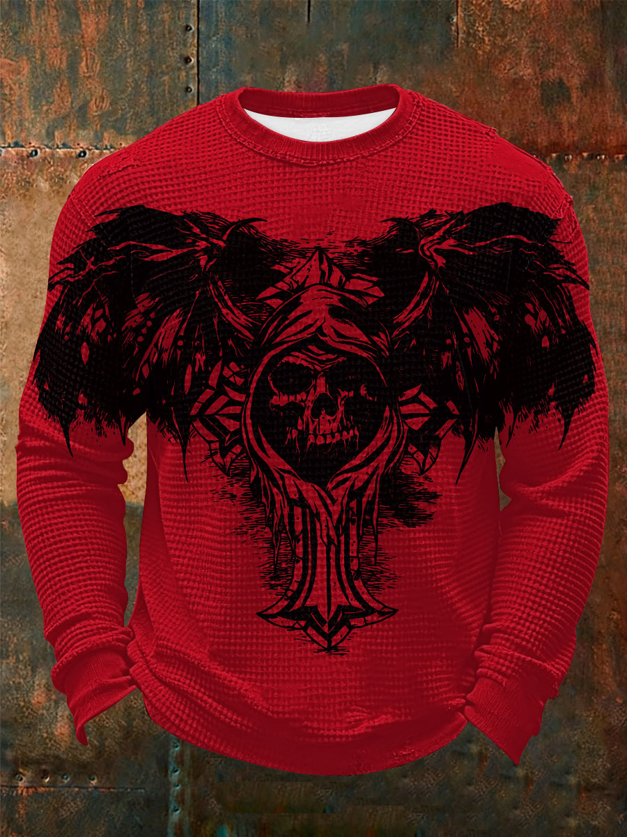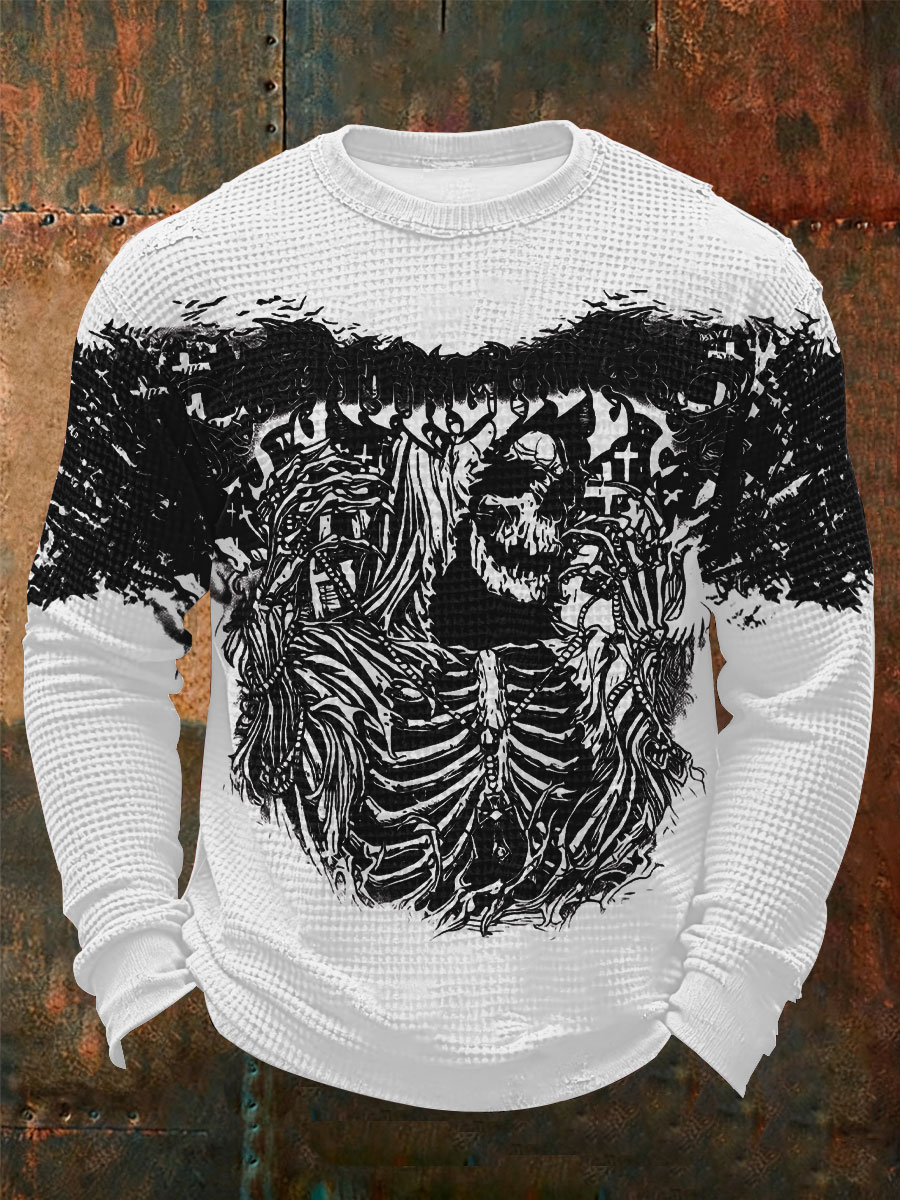 Men's Vintage Skull Waffle Long Sleeve T-Shirt