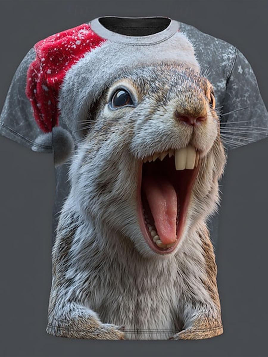 Men's Christmas squirrel print short sleeves t-shirt