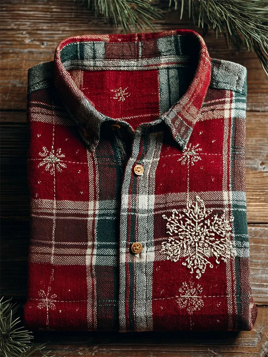 Men's Christmas Snowflakes Colorblock Plaid Shirt