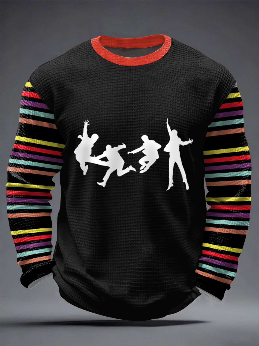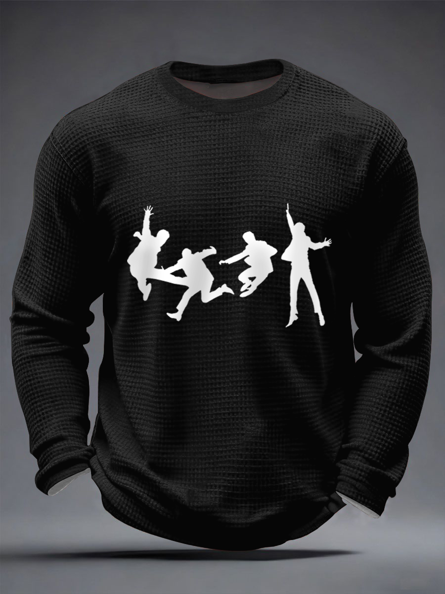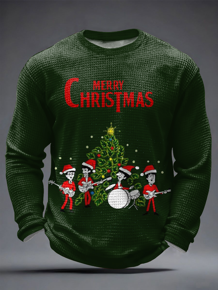 Men's Retro Classic Legendary Rock Band Merry Christmas Print Gift For Fans Casual Waffle Long Sleeve T-Shirt