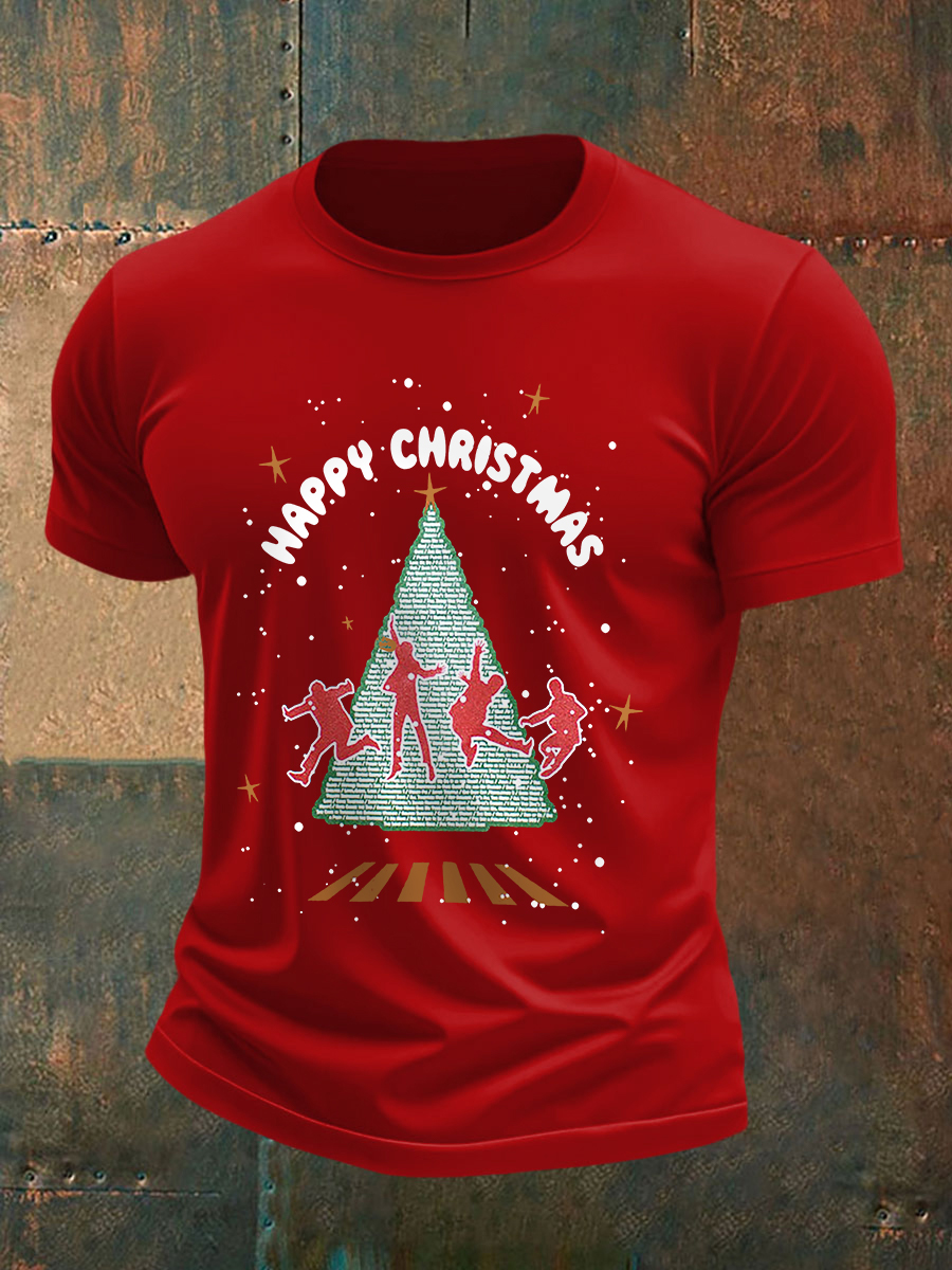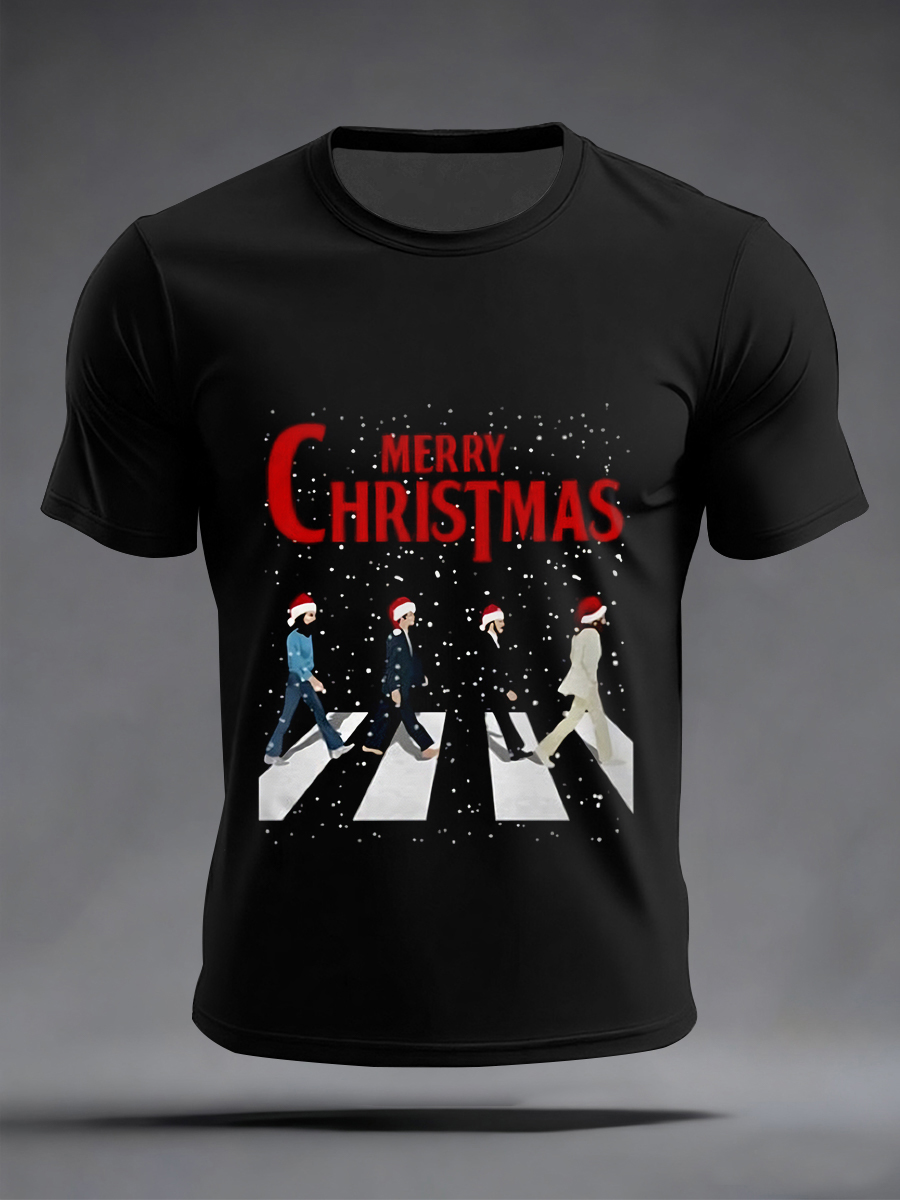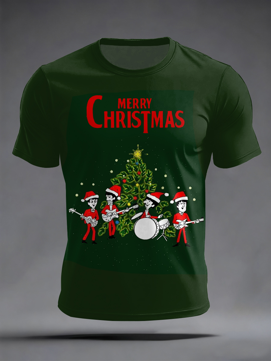 Men's Retro Merry Christmas Classic Legendary Rock Band Print Casual Tee