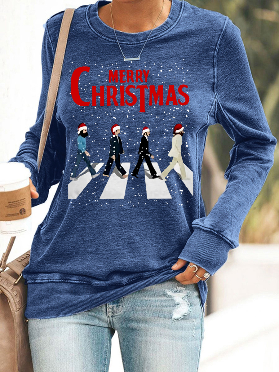 Women's Merry Christmas Retro Classic Legendary Rock Band Print Casual Sweatshirt