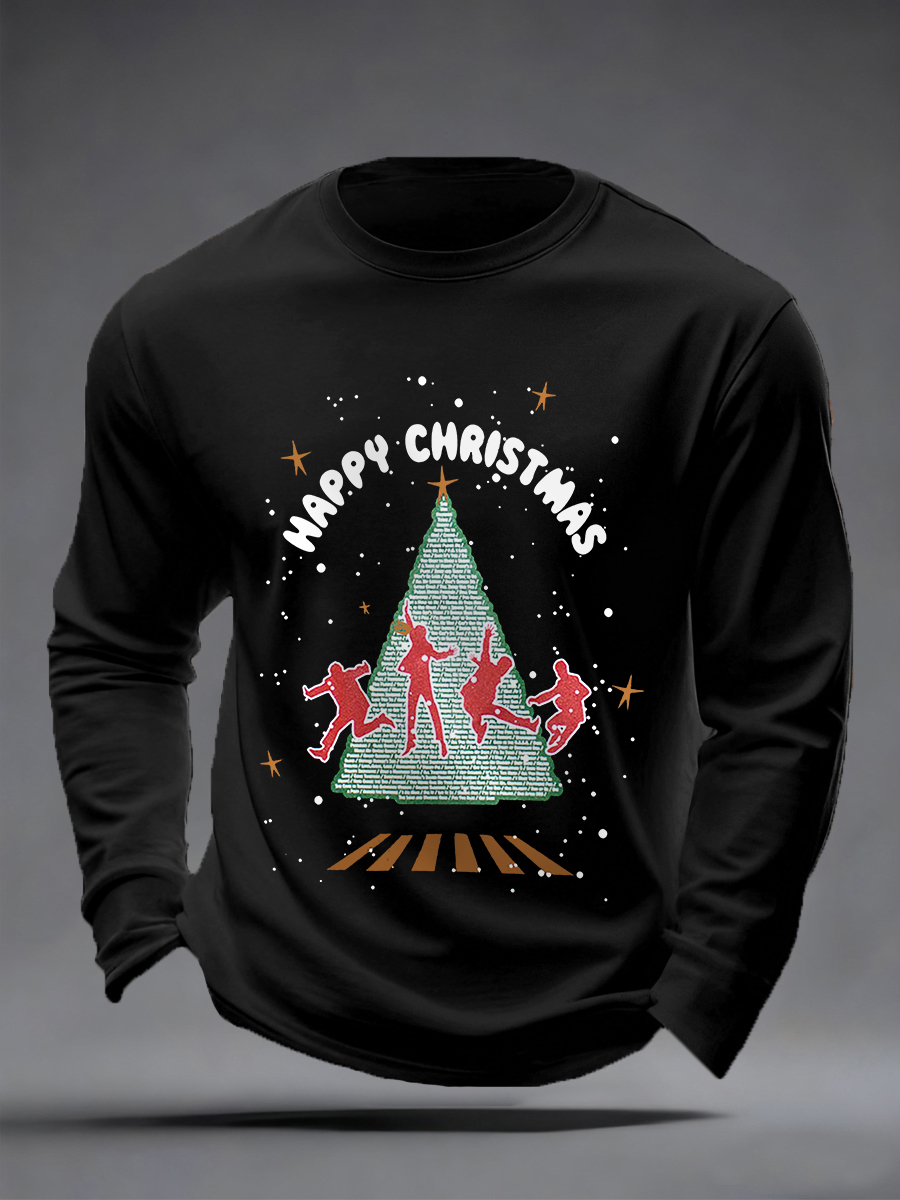 Men's Merry Christmas Retro Classic Legendary Rock Band Print Casual Long Sleeve T-Shirt