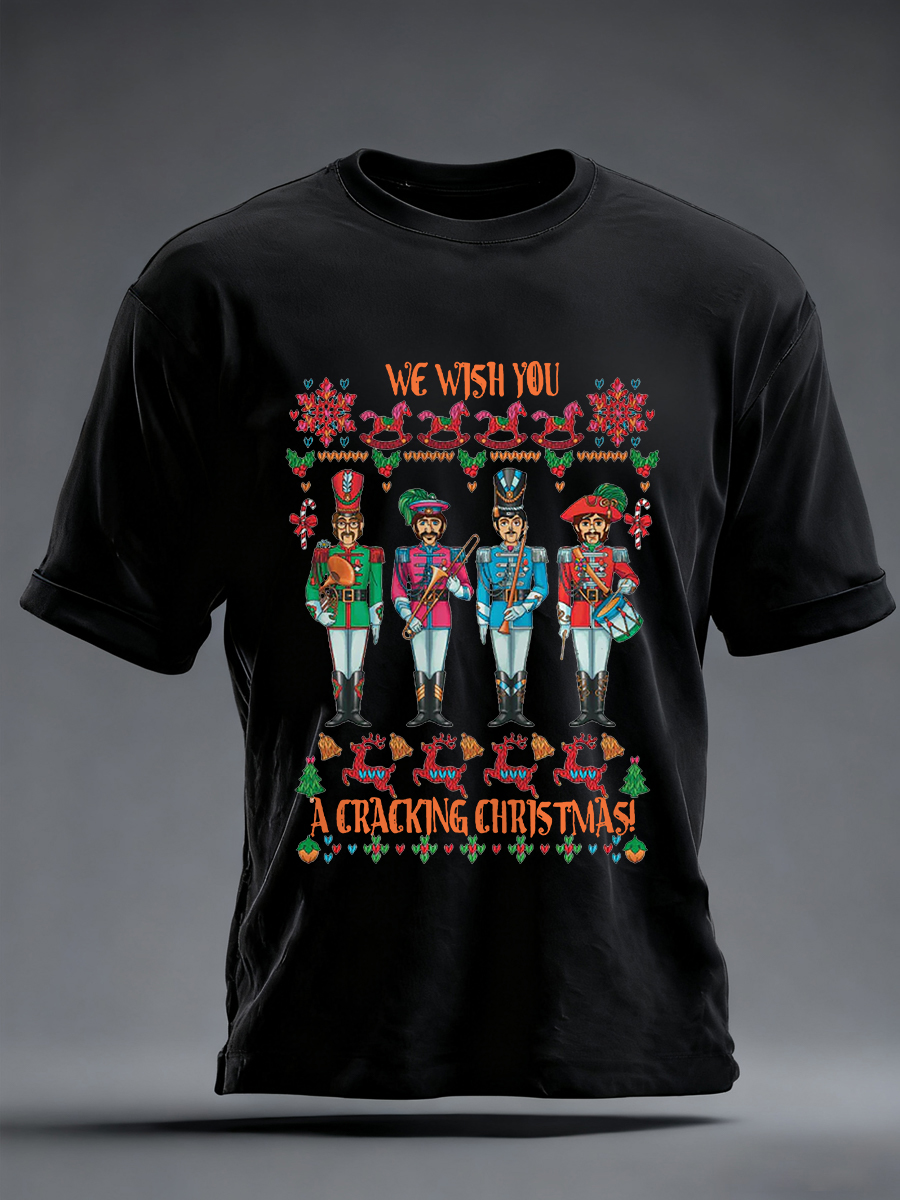 Men's Retro Wish You Have A Cracking Christmas Classic Legendary Rock Band Print Casual Tee