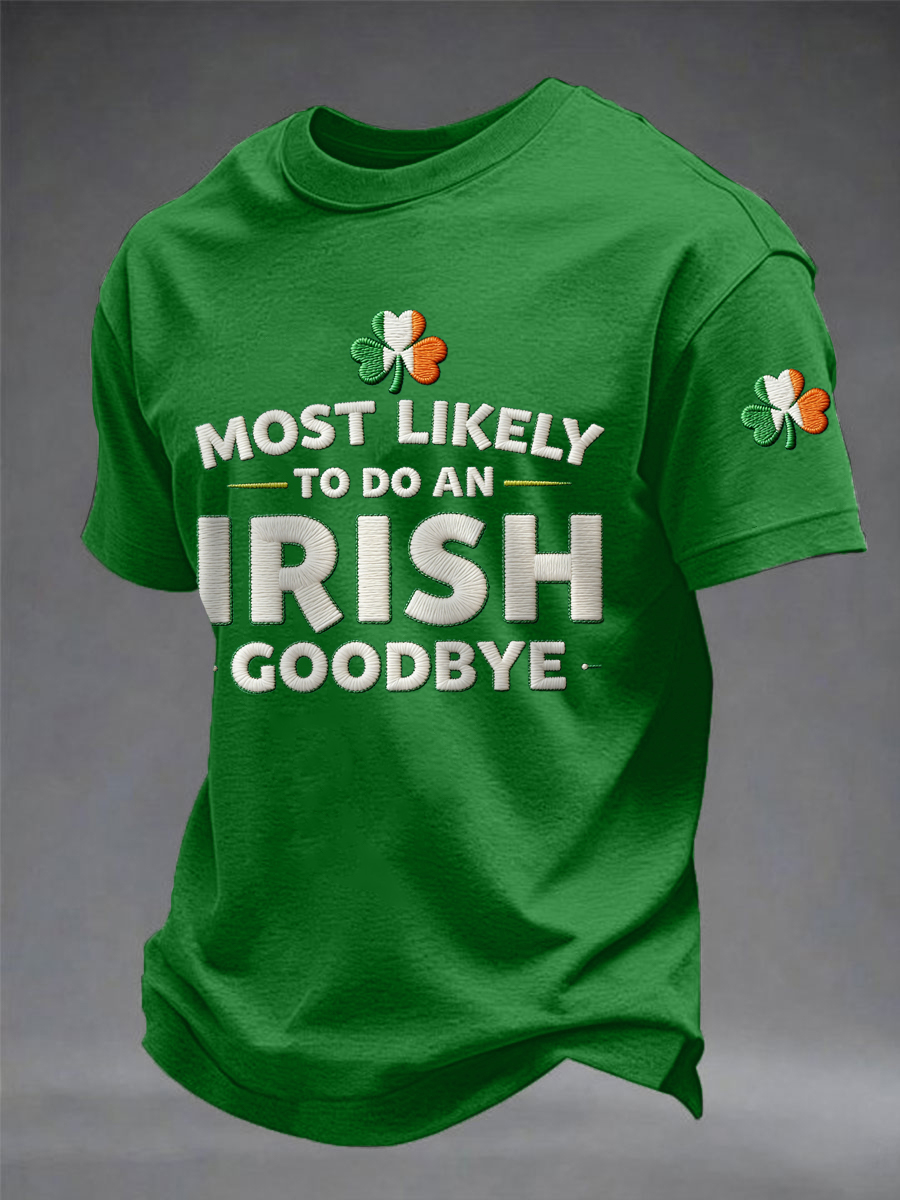Men's Funny St. Patrick's Day Most Likely To Do An Irish Goodbye Print Casual Tee
