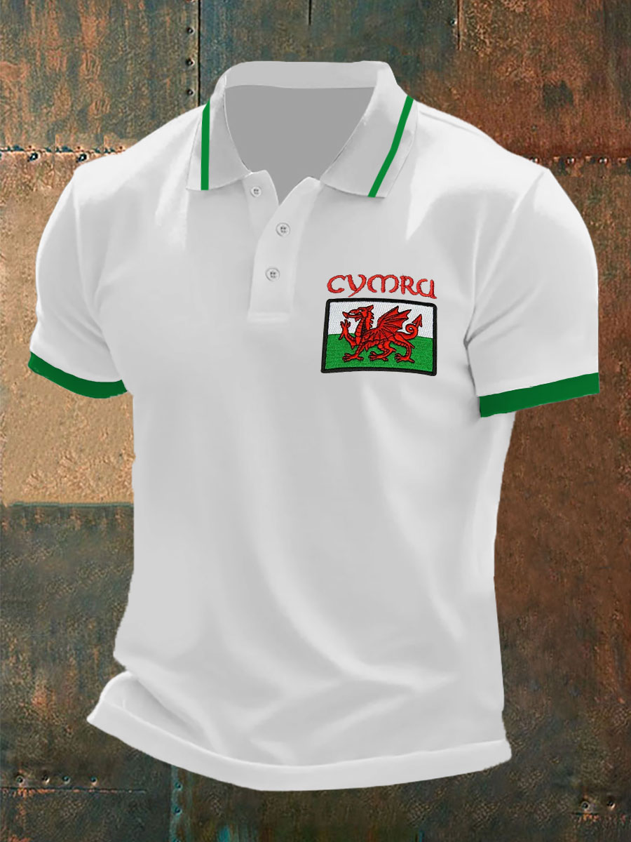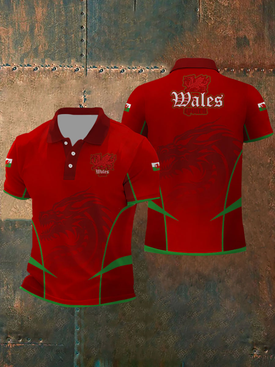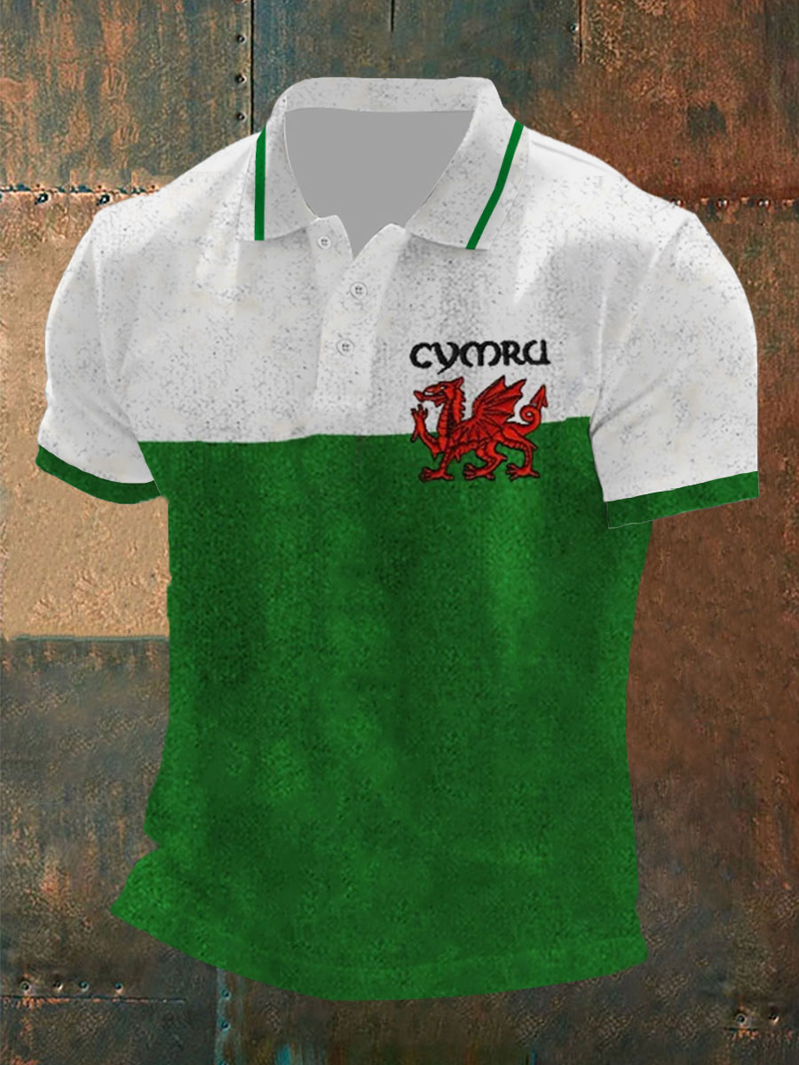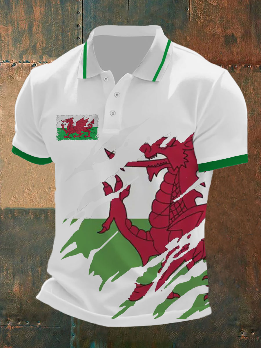 Men's Welsh Flag Casual Button T-Shirt