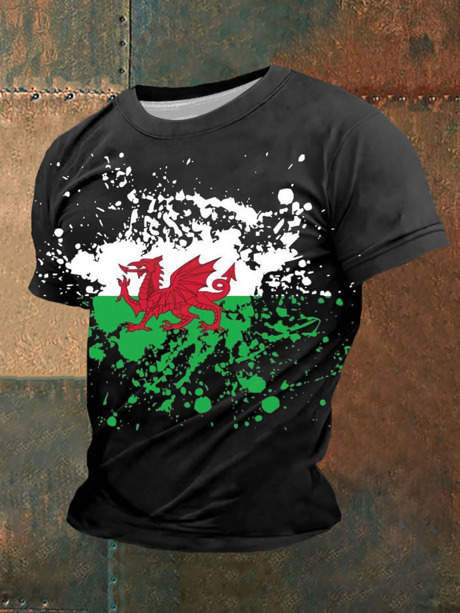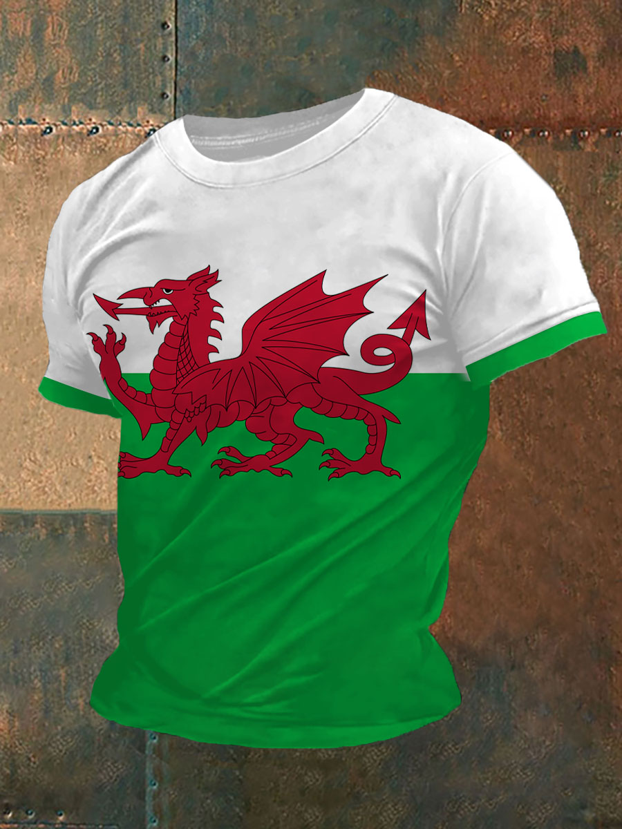 Men's Welsh Flag Printed Casual T-Shirt