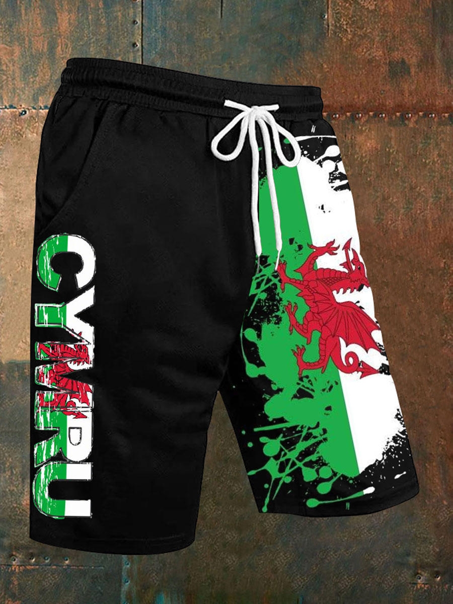 Men's Welsh Flag Printed Casual Shorts