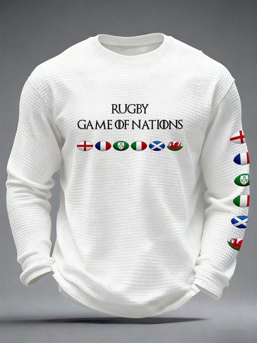 Men's Rugby Lover Game of Nations Printed Waffle Long Sleeve Top