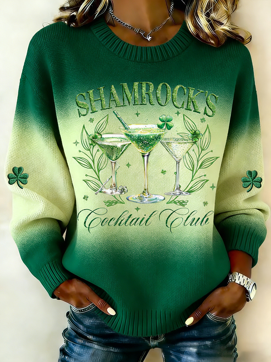 Women'S Casual St. Patrick's Day Shamrock Printed Sweater