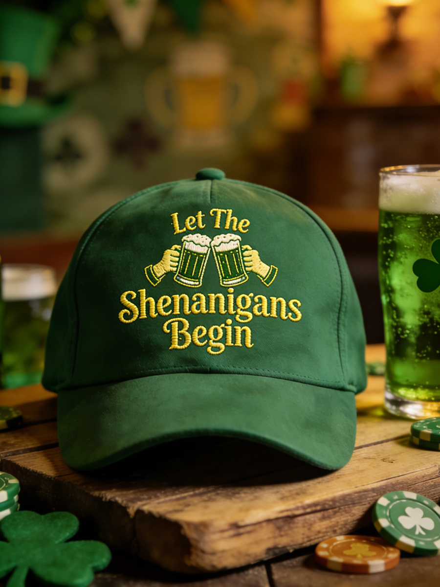Unisex Funny St. Patrick's Day Let The Shenanigans Begin Green Beer Cheers Print Hat