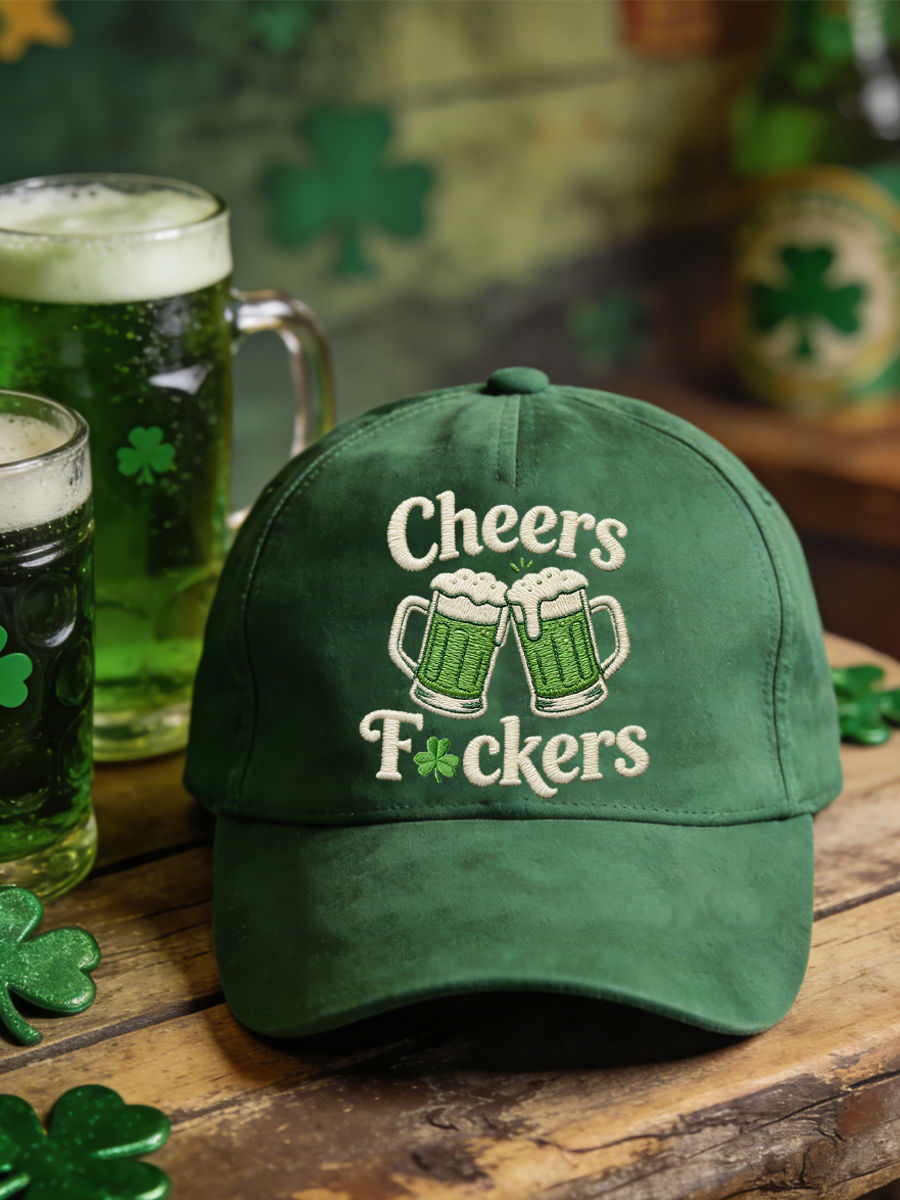 Unisex Funny St Patrick's Day Cheers F*ckers! Green Beer Shamrock Print Hat