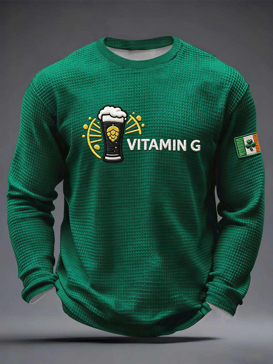 Men's St. Patrick's Day Split the G Printed Waffle Long Sleeve T-Shirt