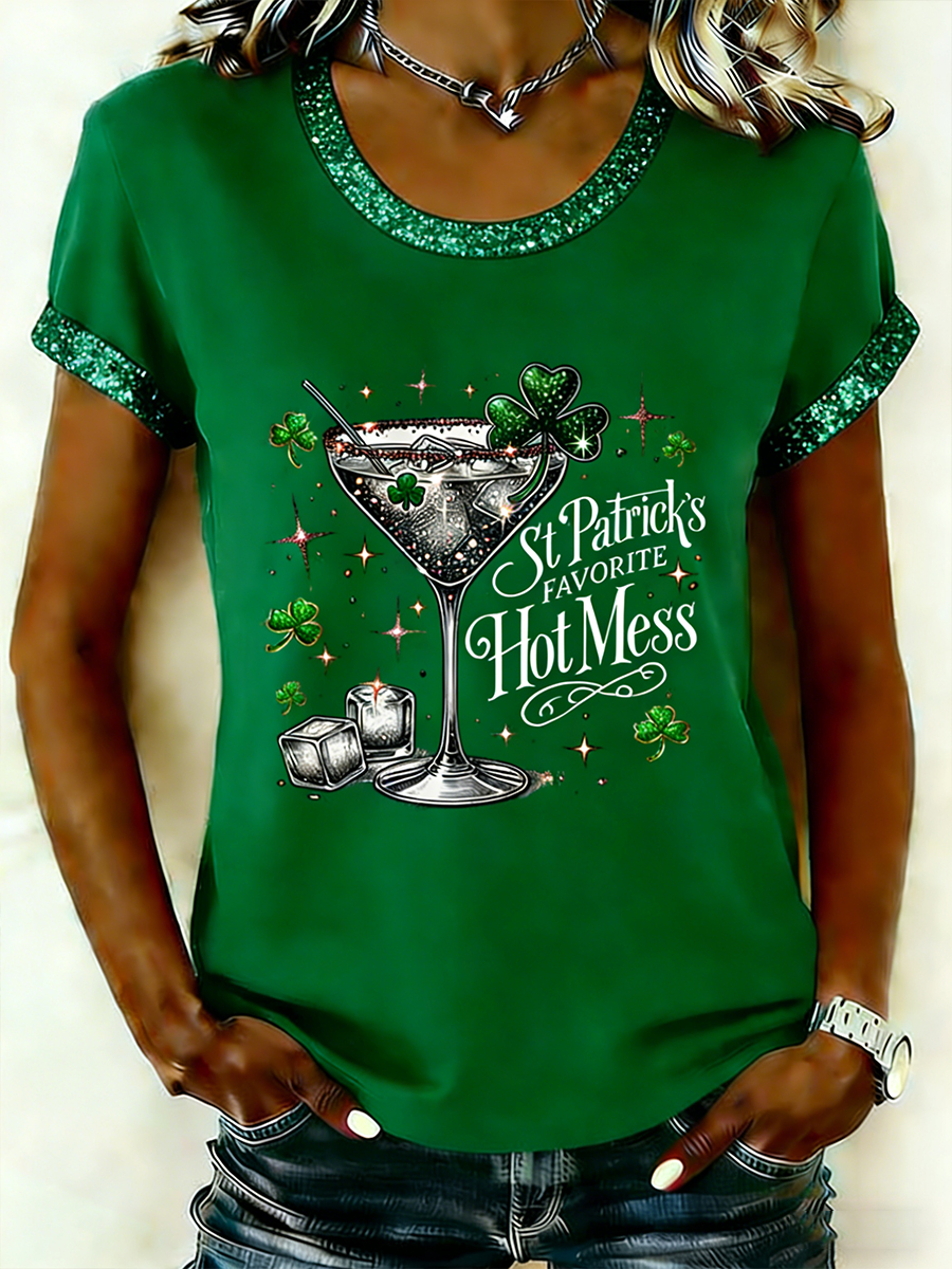Women's St Patrick’s Shamrock Hot Mess Printed Short-Sleeved T-Shirt