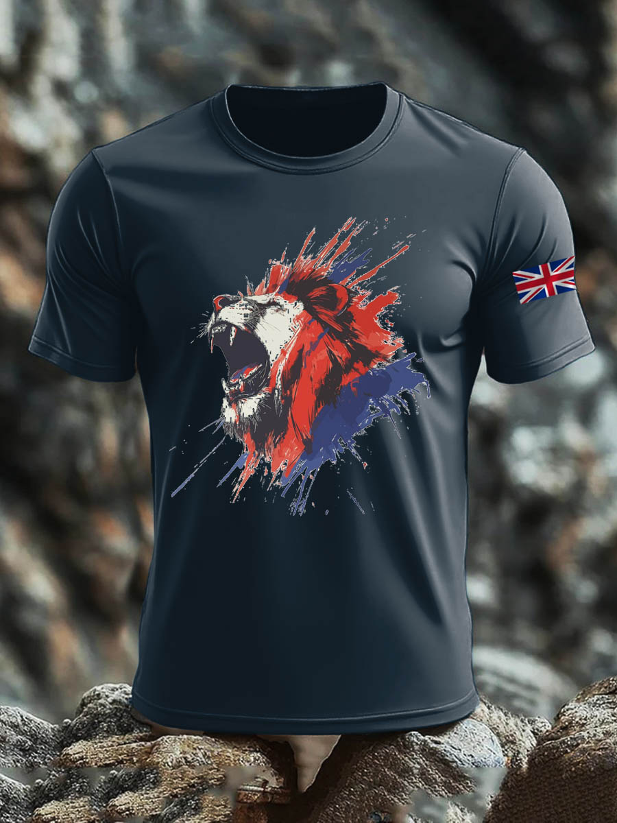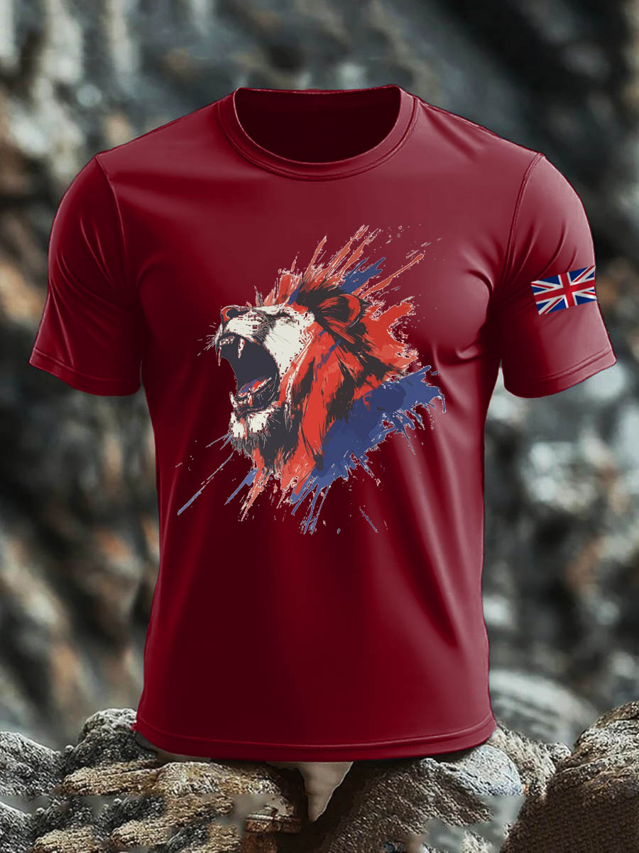 Men's British Lion Imitation Cotton Short-Sleeved Printed T-shirt