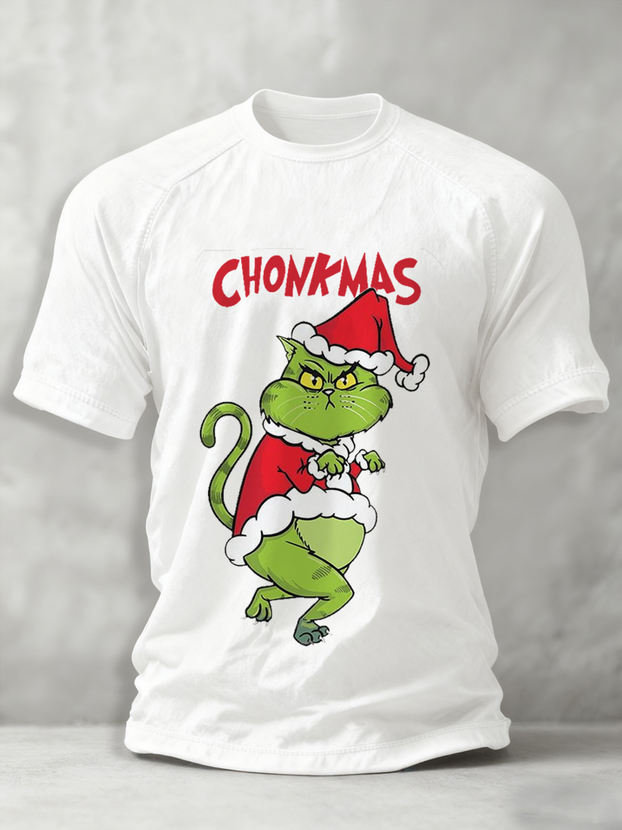 Men's Funny Christmas Grinch Cat Print Casual Tee