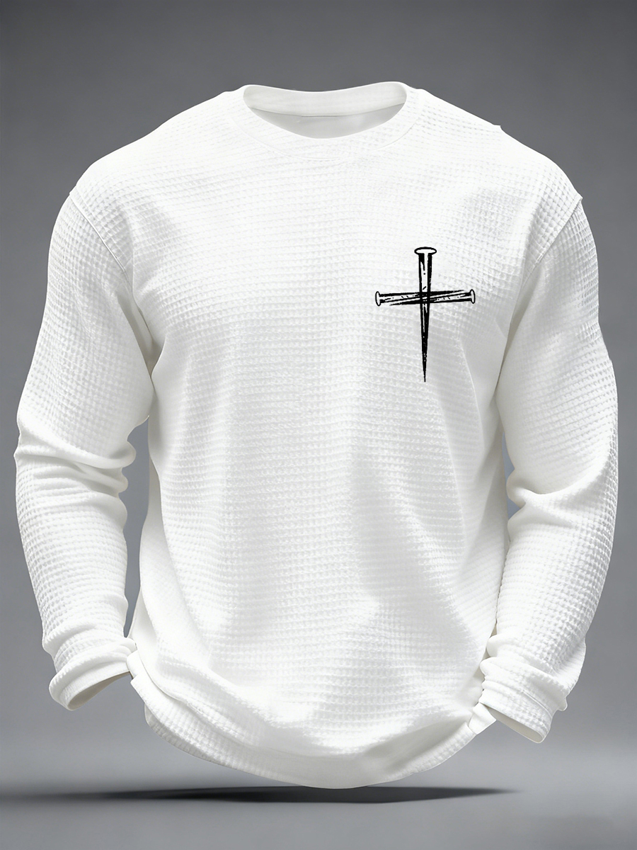 Men's Jesus Has My Back Cross Faith Print Casual Waffle Long Sleeve T-Shirt