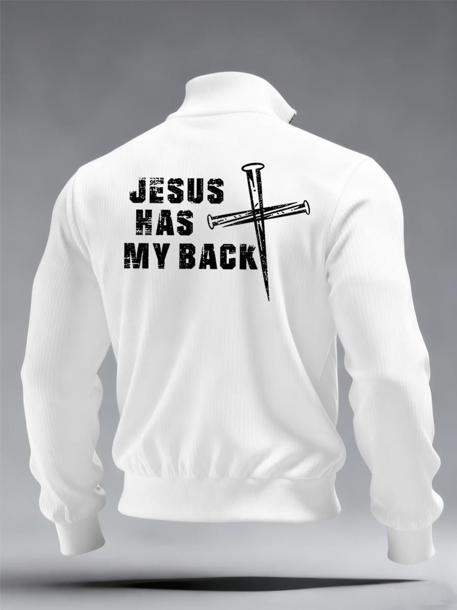 Men's Jesus Has My Back Printed Casual Zipper Pullover