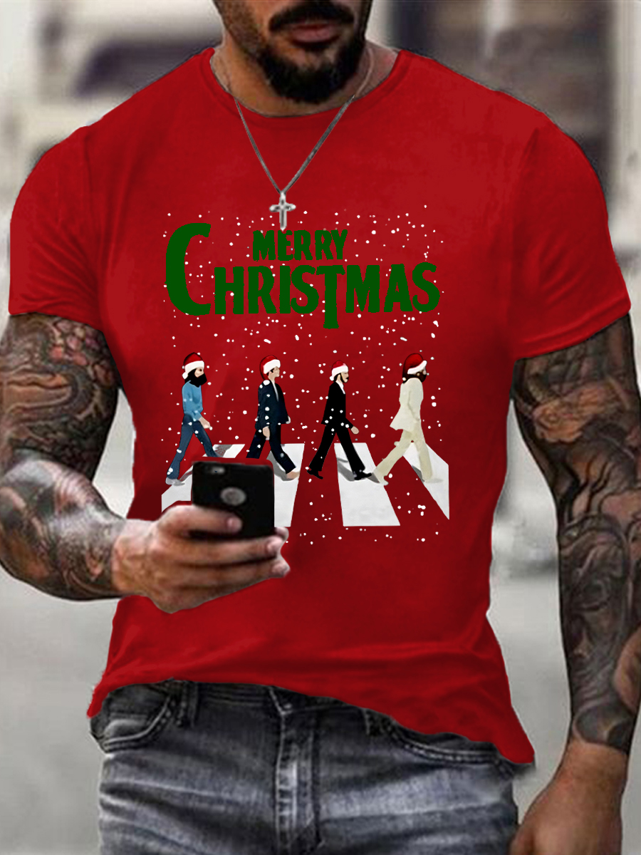 Men's Merry Christmas Retro Classic Legendary Rock Band Print Casual Tee