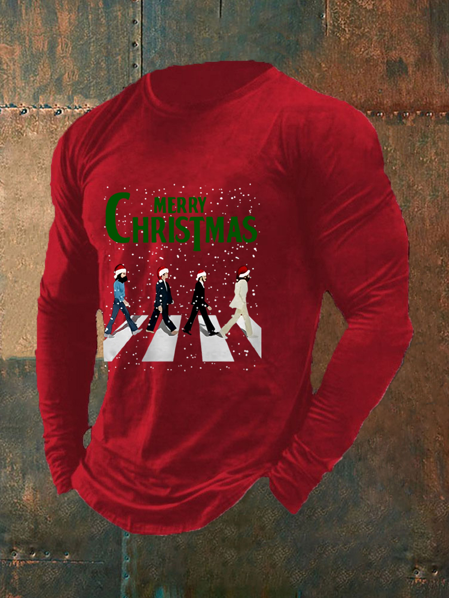 Men's Merry Christmas Retro Classic Legendary Rock Band Print Gift For Fans Casual Long Sleeve T-Shirt