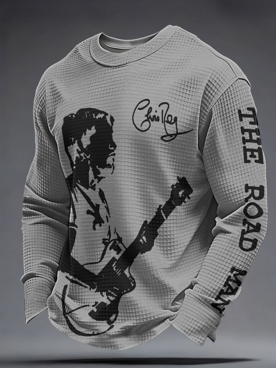 Men's The Road Man Music Lover Printed Waffle Sweatshirt
