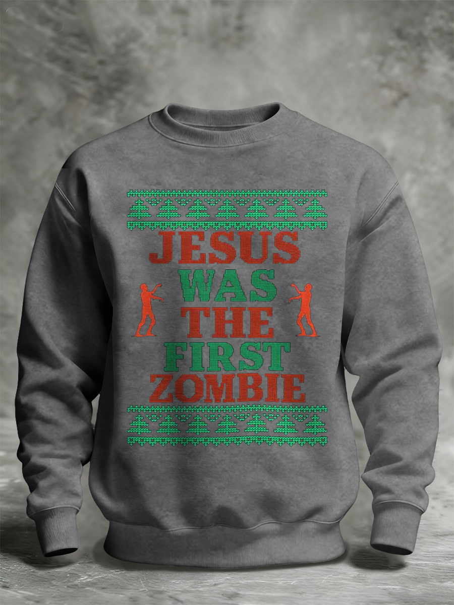 Unisex Funny Christmas Jesus Was The First Zombie Printed Sweatshirt