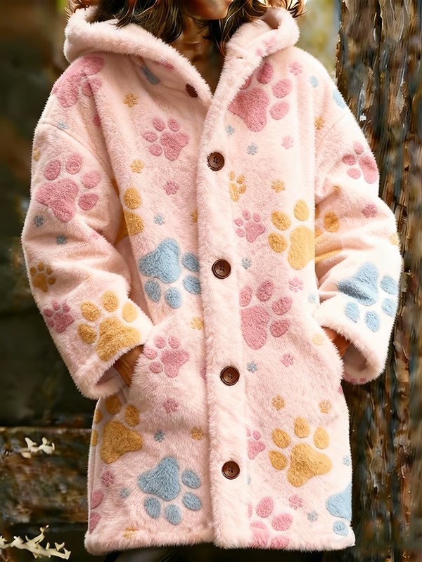 Women's Animal Paw Print Flannel Warm Jacket