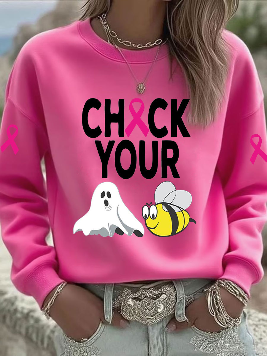 Women's Breast Cancer Awareness Check Your Boo Bees Printed Casual Sweatshirt