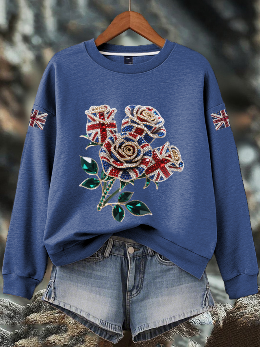 Women's British imitation diamond hot-drilling Print Sweatshirt