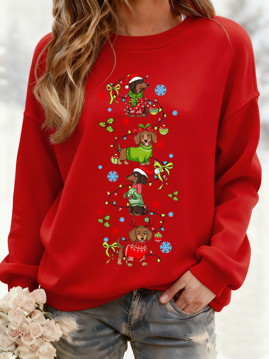 Women's Christmas Dachshund Through The Snow Print Casual Sweatshirt