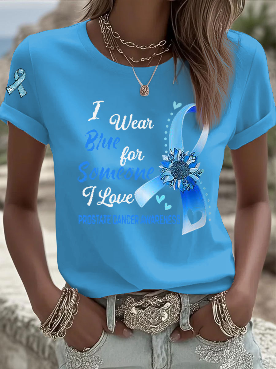 Women's Prostate Cancer Awareness I Wear Blue For Someone I Love Print T-Shirt