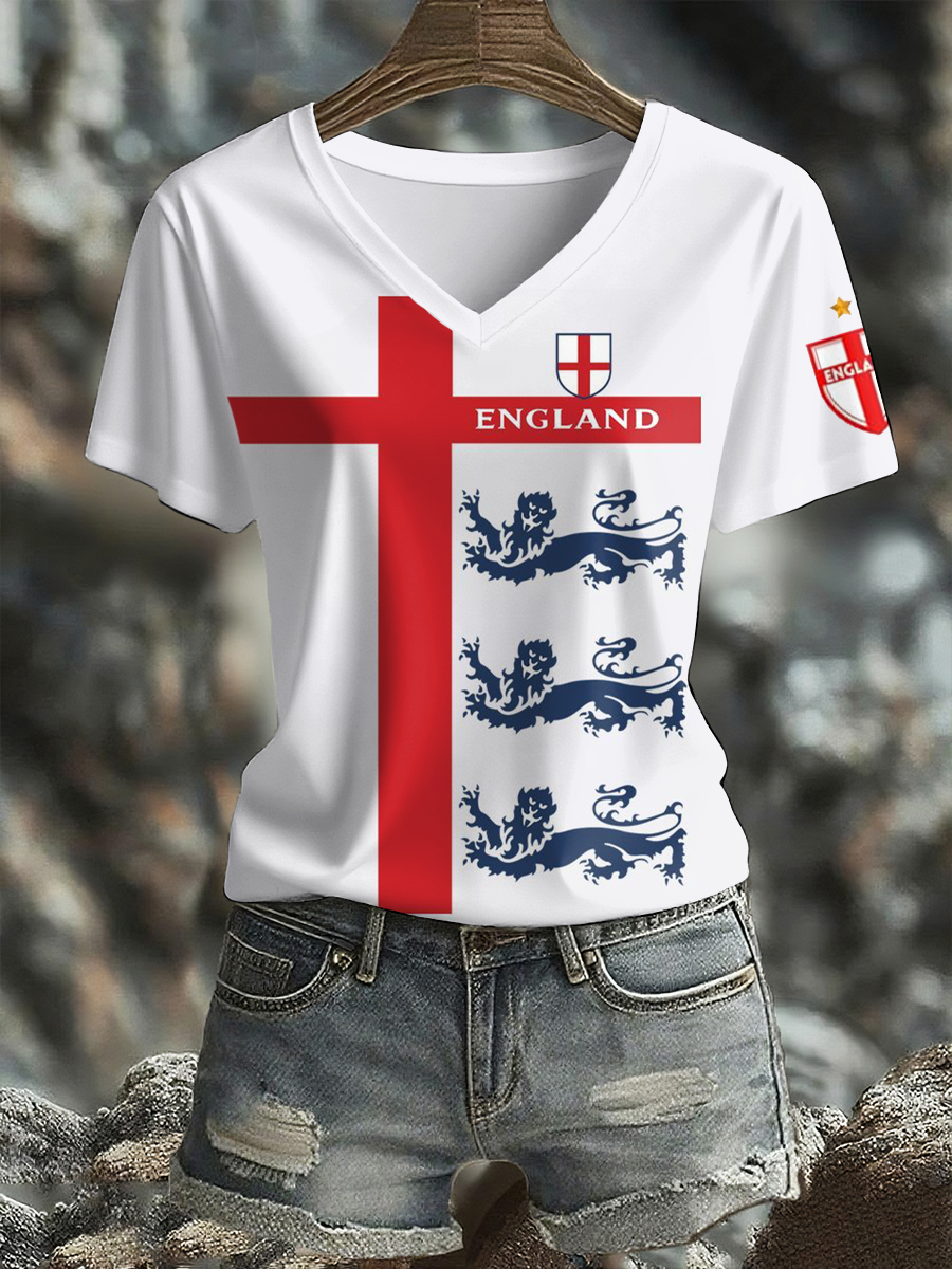 Women's UK England Football Lover Champion Printed T-shirt
