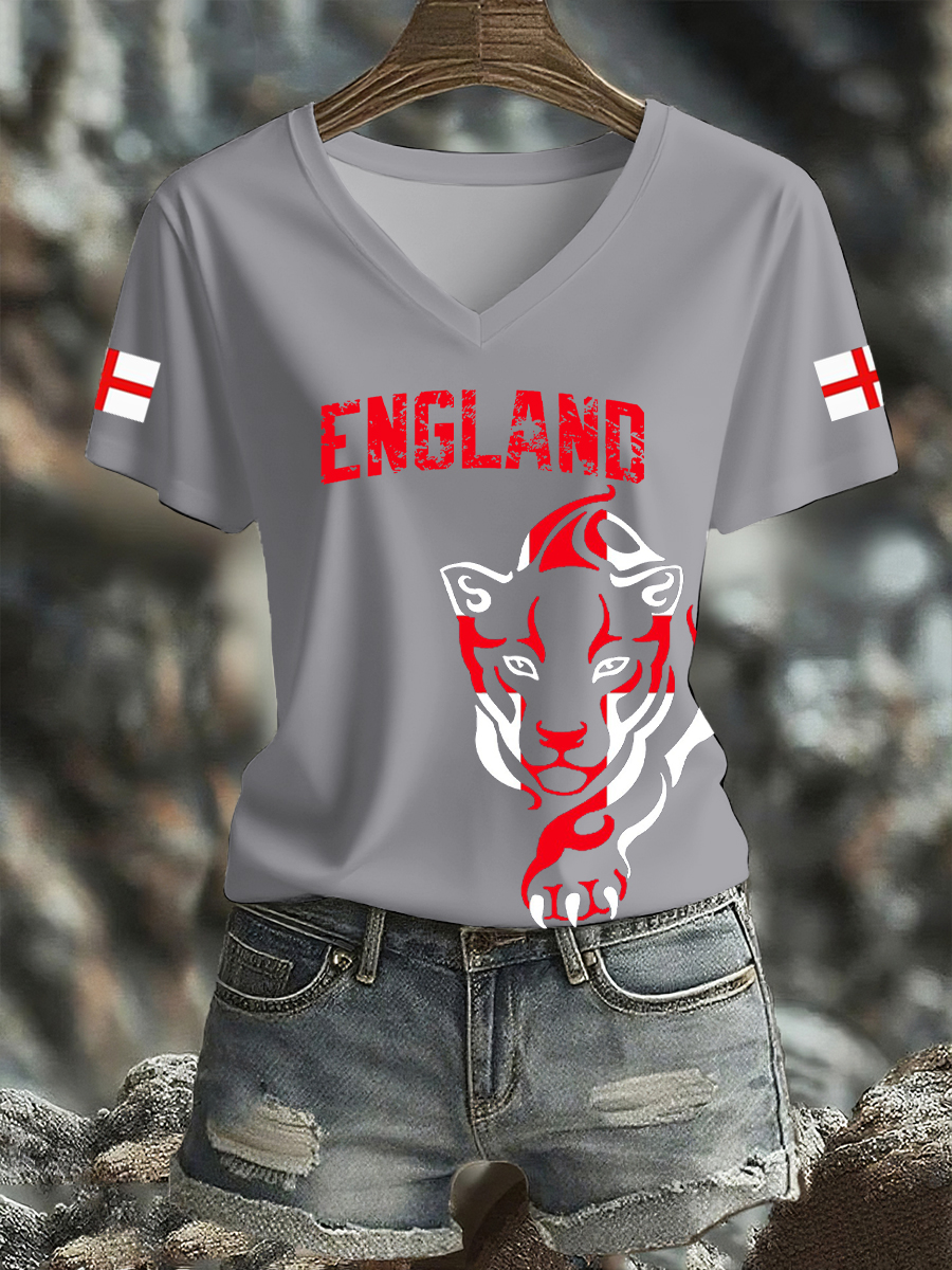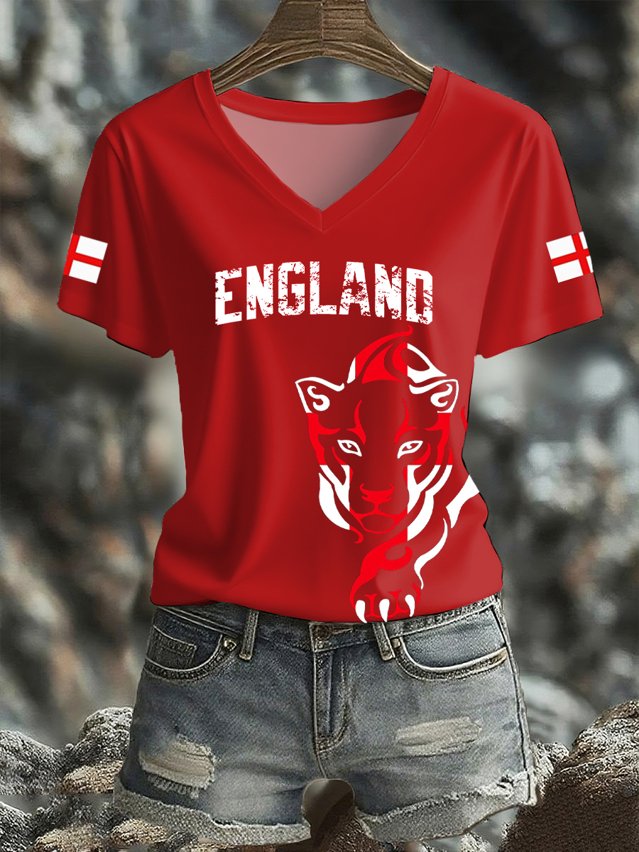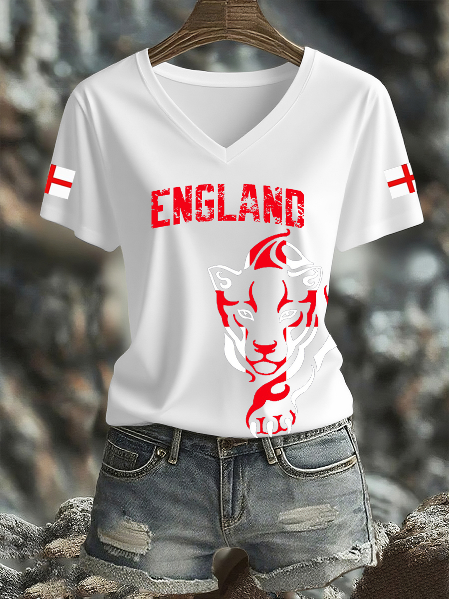 Women's UK England Football Lover Champion Printed T-shirt