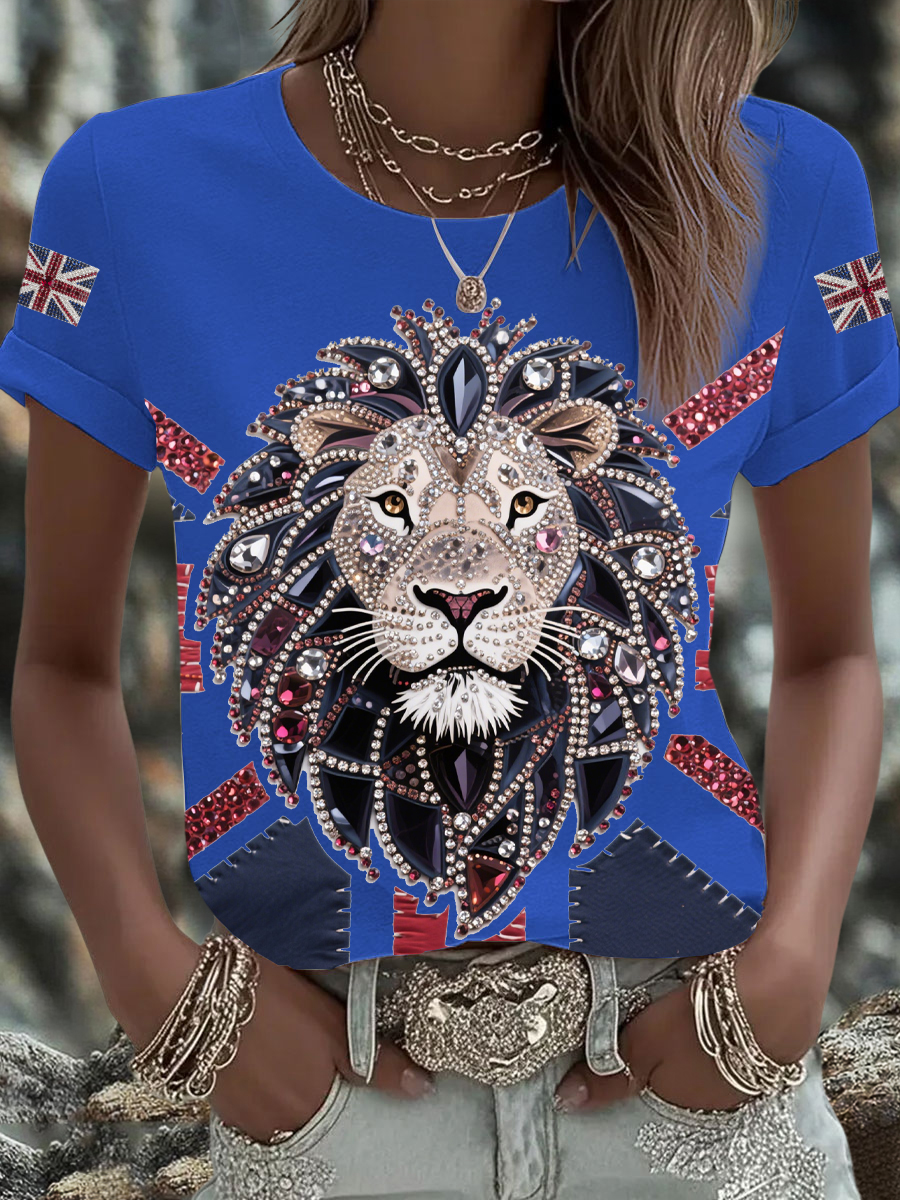 Women's UK Flag Lion Printed T-shirt